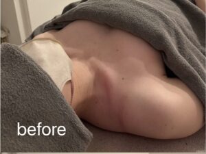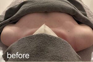 このお客様は右肩の方が巻きが強く、右のバストの大きさが左に比べて小さいのがお悩みでした。