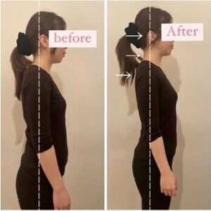 beforeのお写真では猫背で巻肩になってしまい、首が前に出ています。