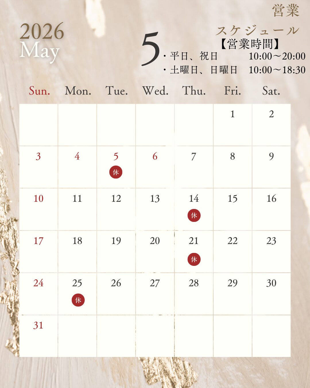 5月の店休日のお知らせ📢